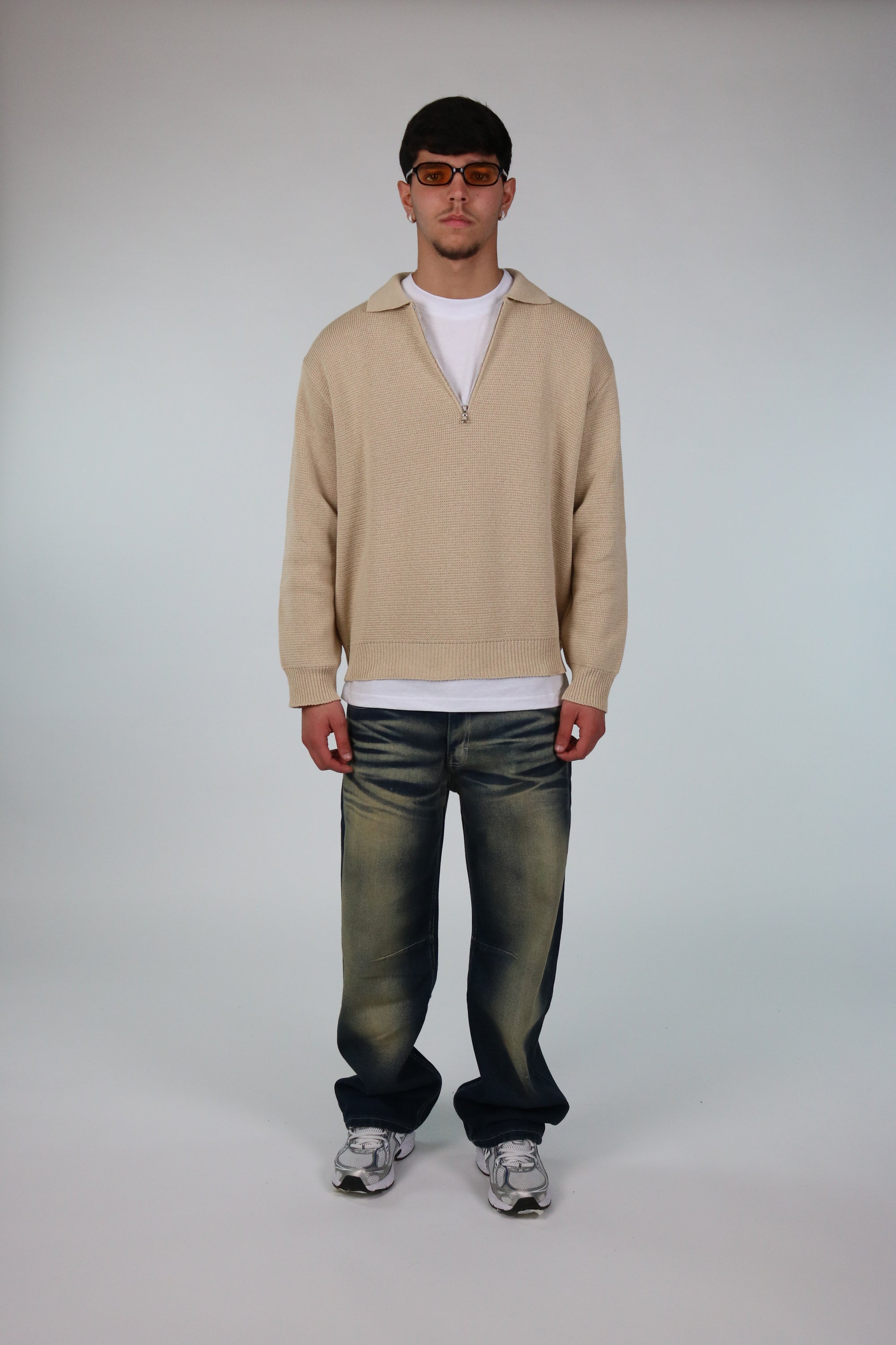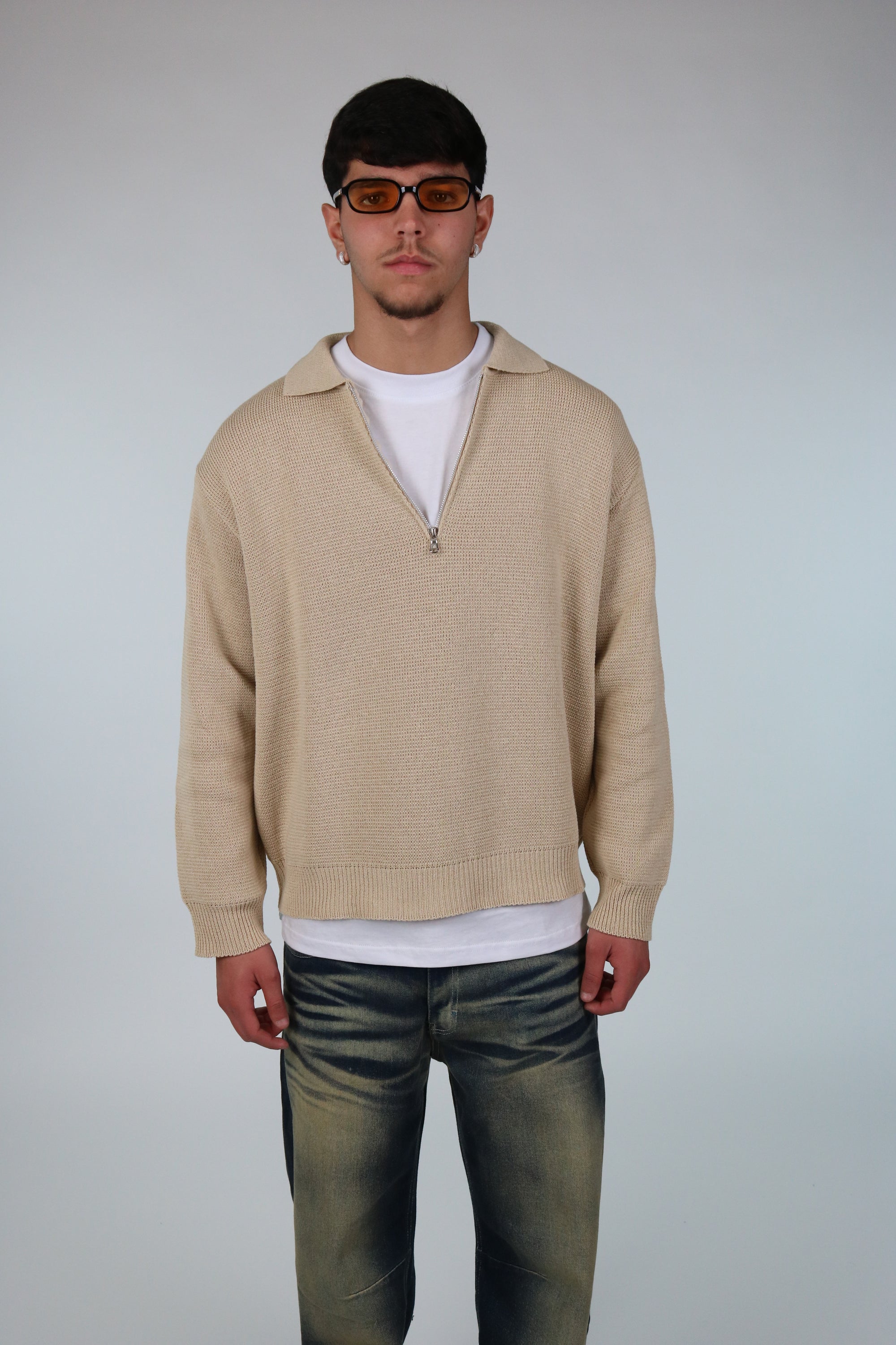 Polo con Zip cropped Bianco
