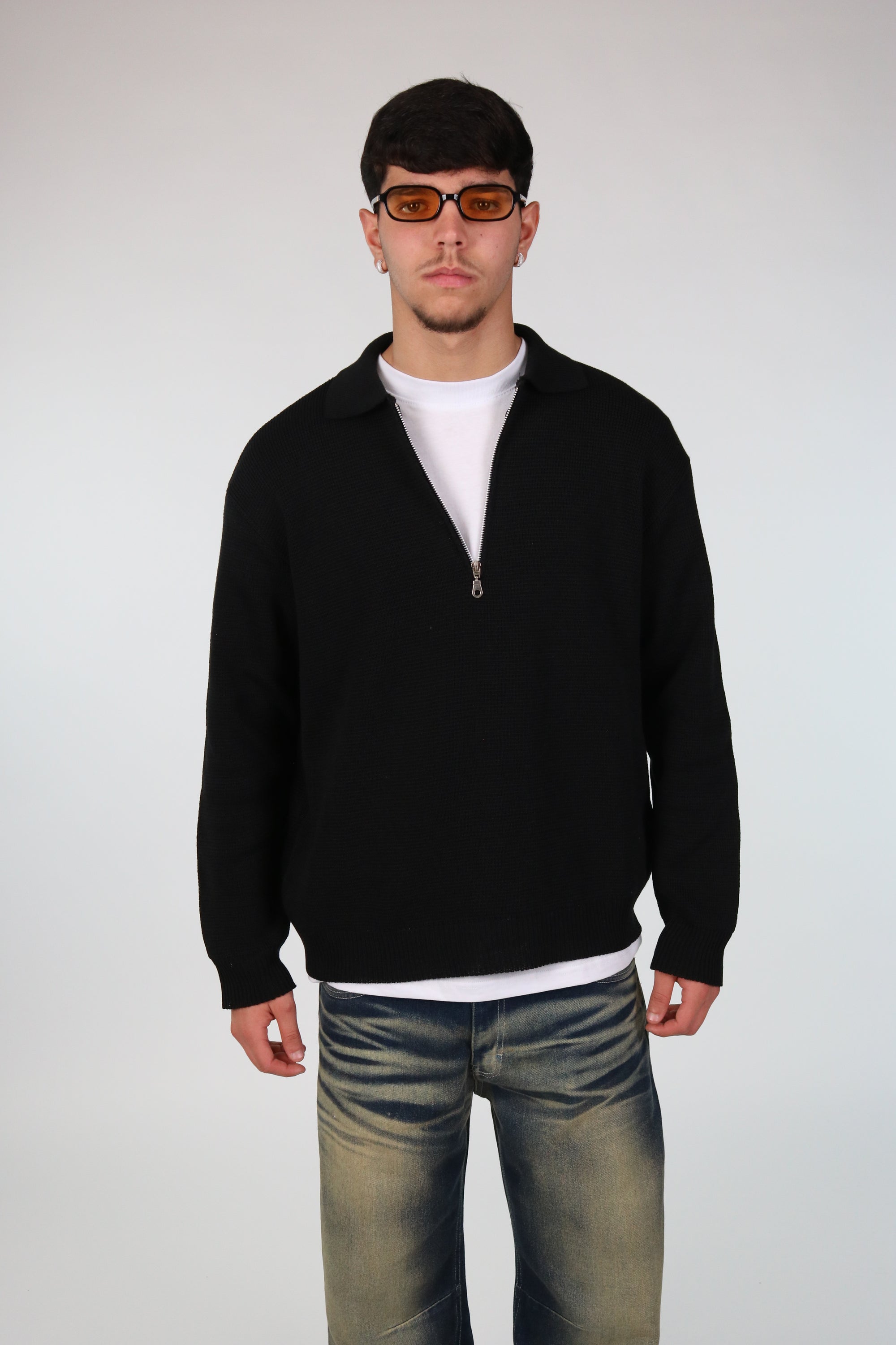 Polo con Zip cropped Nero