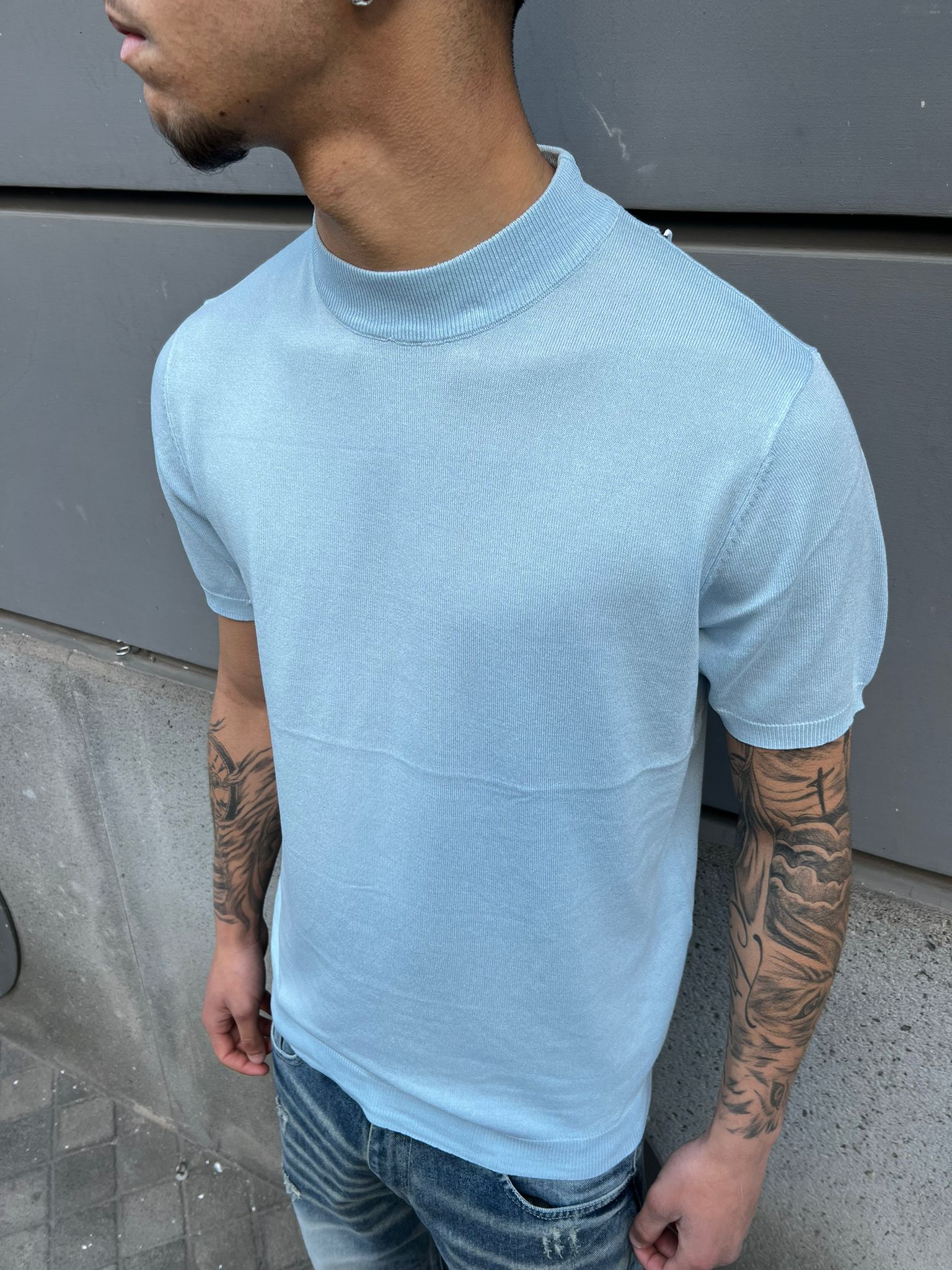 T-Shirt In Filo Di Cotone Celeste