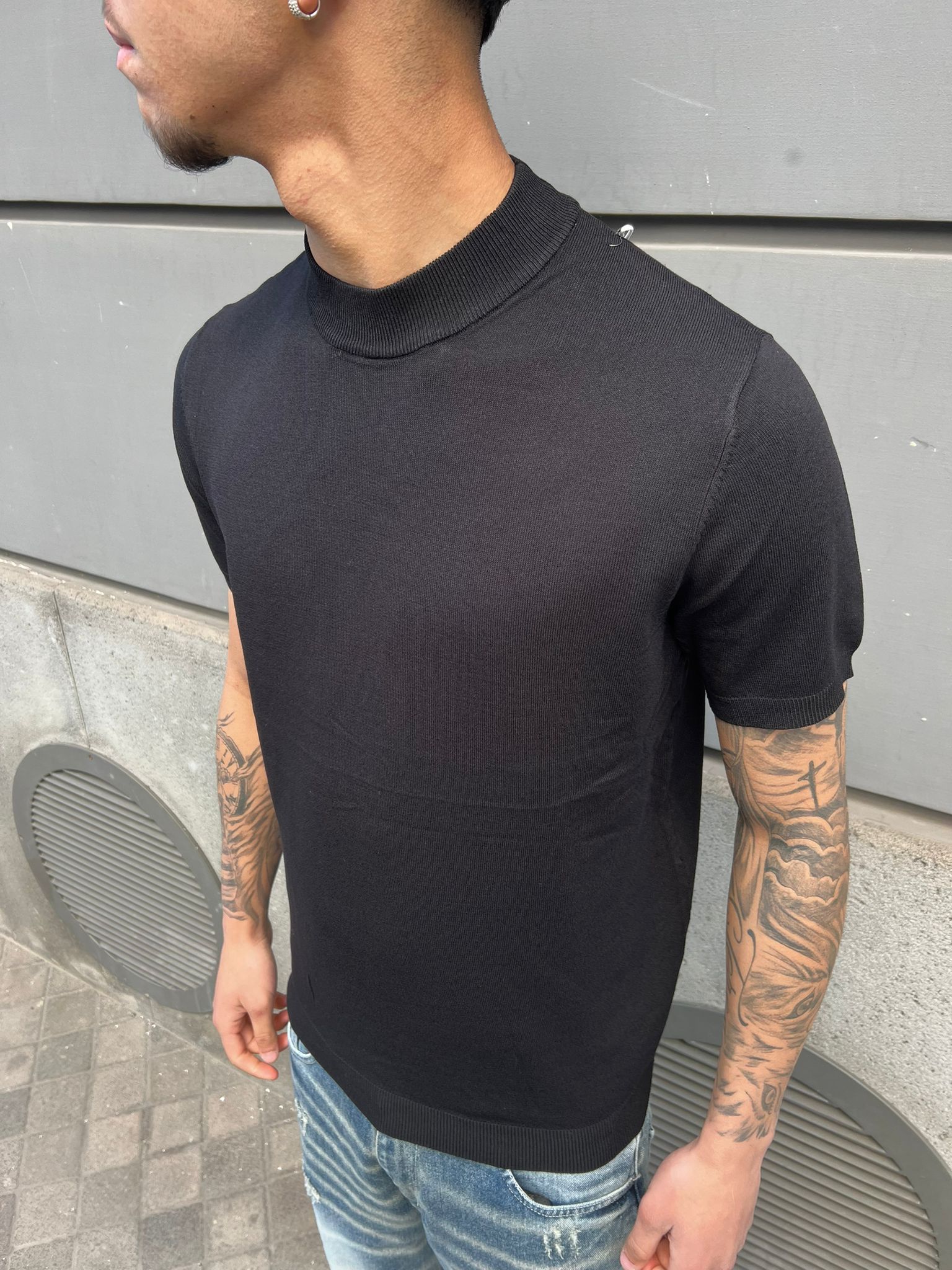 T-Shirt In Filo Di Cotone Nero