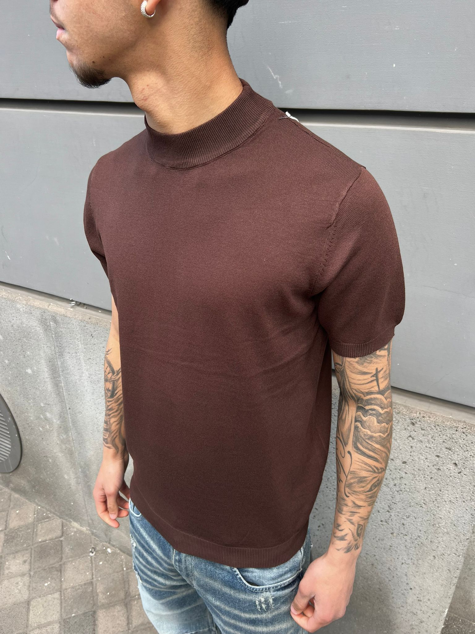 T-Shirt In Filo Di Cotone Marrone