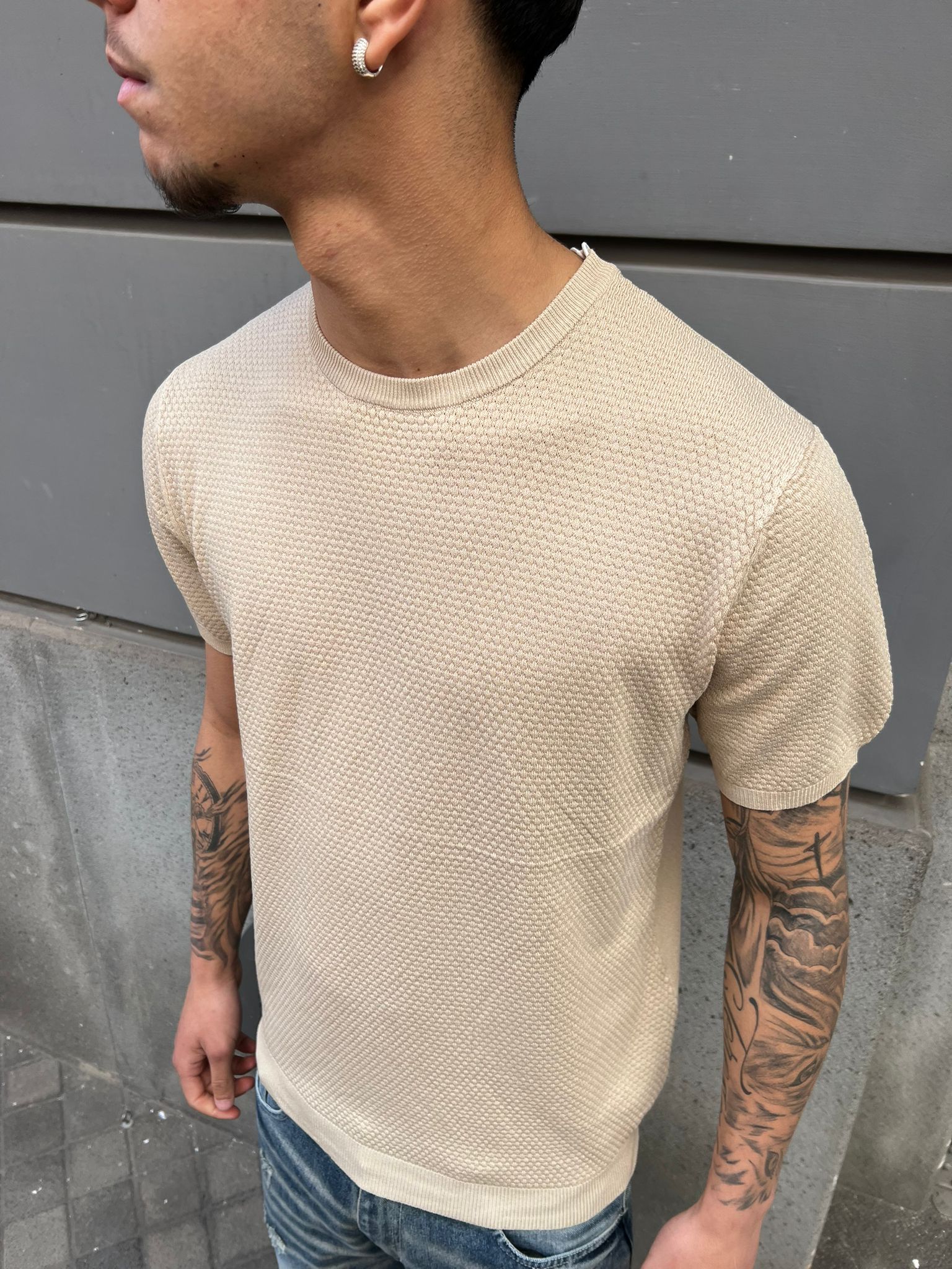 T-Shirt In Filo Di Cotone Beige